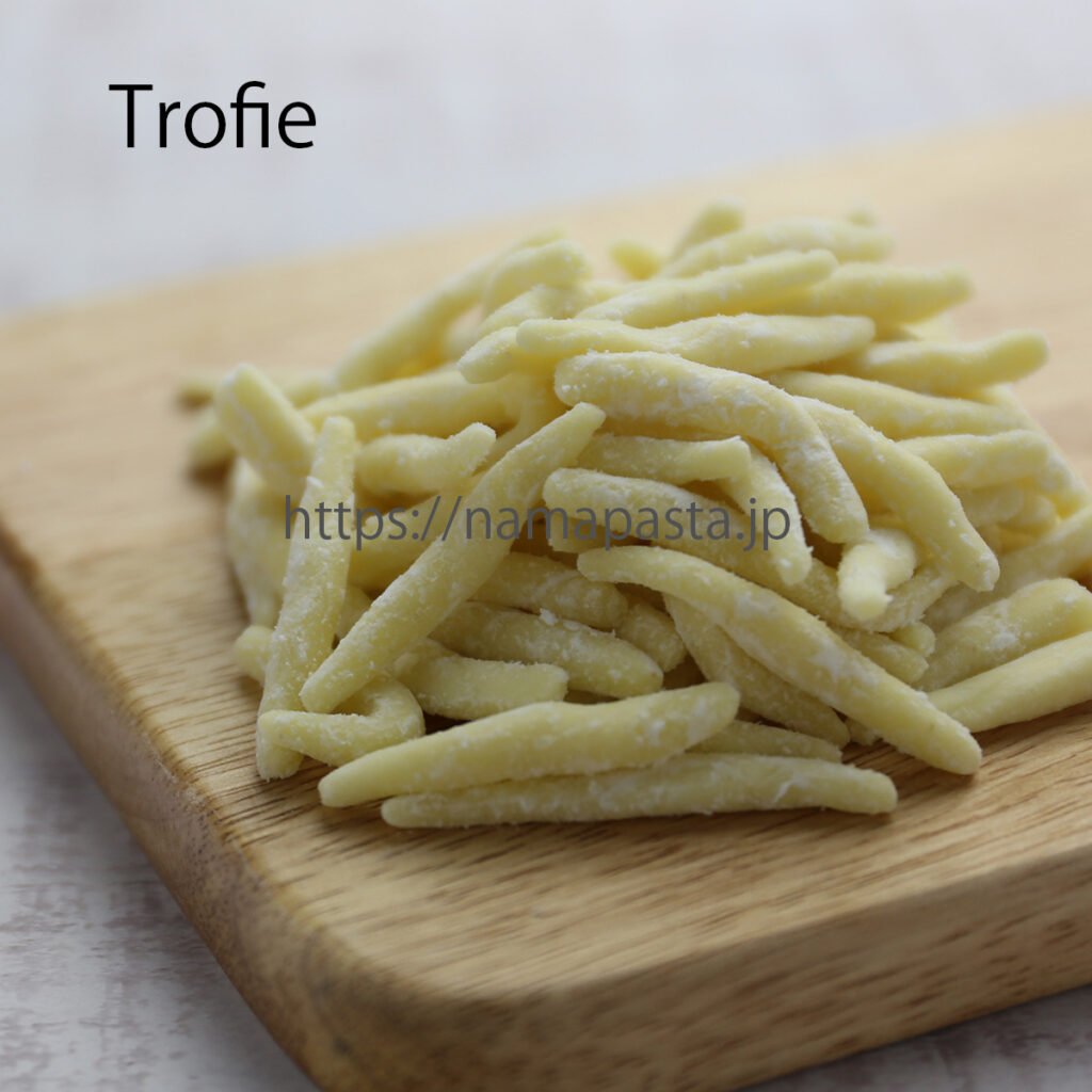 イタリア北西部 リグーリア州で食されるパスタ。ペストジェノベーゼとあわせるのが基本、長さは5cm前後でモチモチした食感が楽しめます。